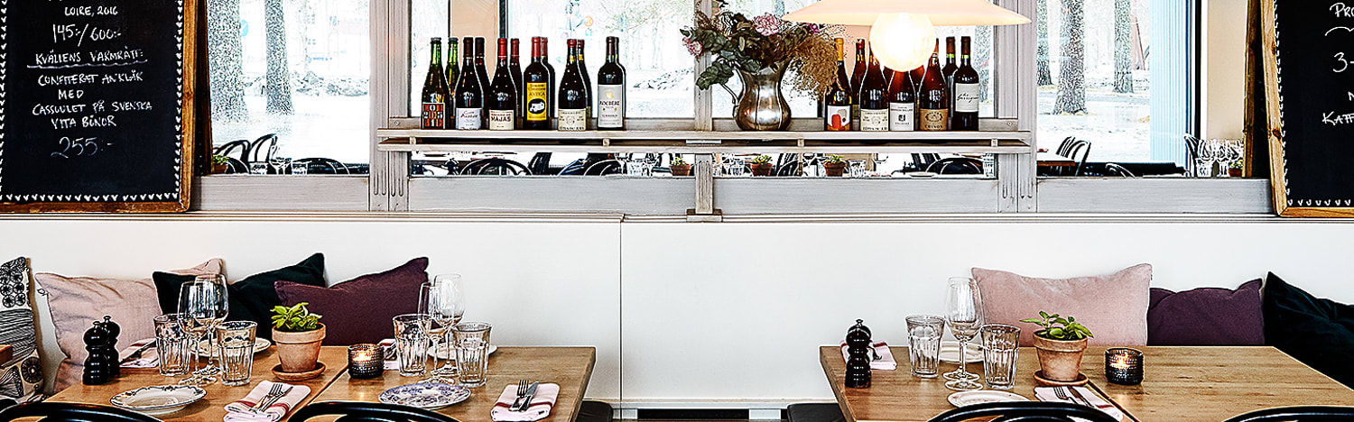 På menyn hittar ni rustika och säsongsbaserade rätter, tillagat med svenska, i möjligaste mån från våra lokala leverantörer, med inslag av spännande tavelrätter. Dryck kommer främst från våra lokala producenter och vinlistan domineras av viner från Frankrike. Sommartid, är ni välkommen till vår stora uteservering mitt i den grönskande Skulpturparken. Lunch, middag eller ett glas vin i baren, du ska alltid känna dig välkommen till stans bästa kvarterskrog.