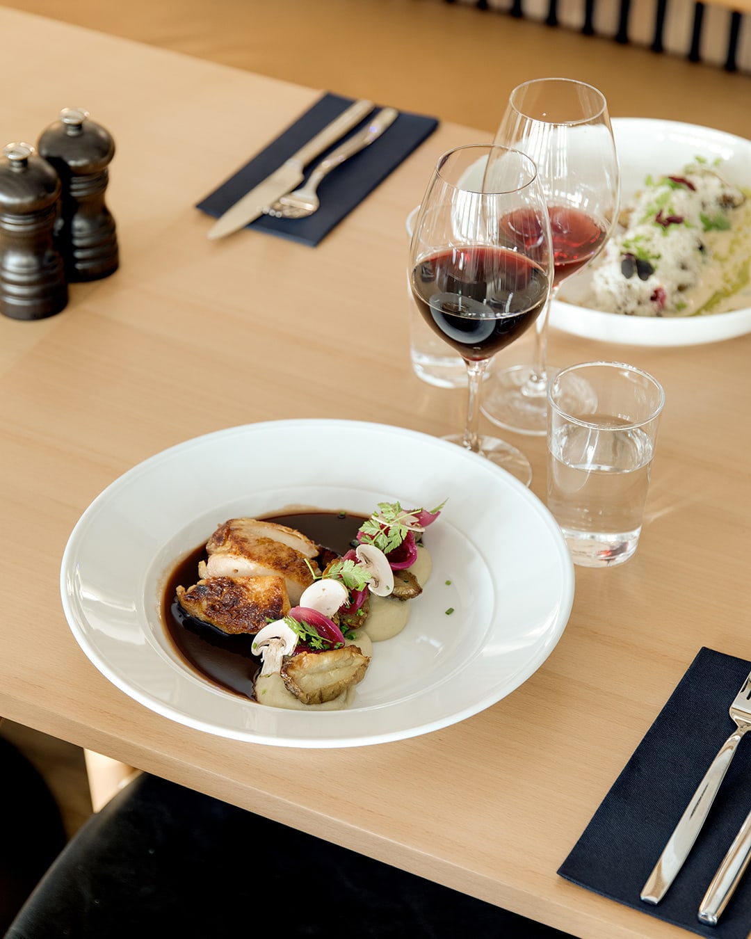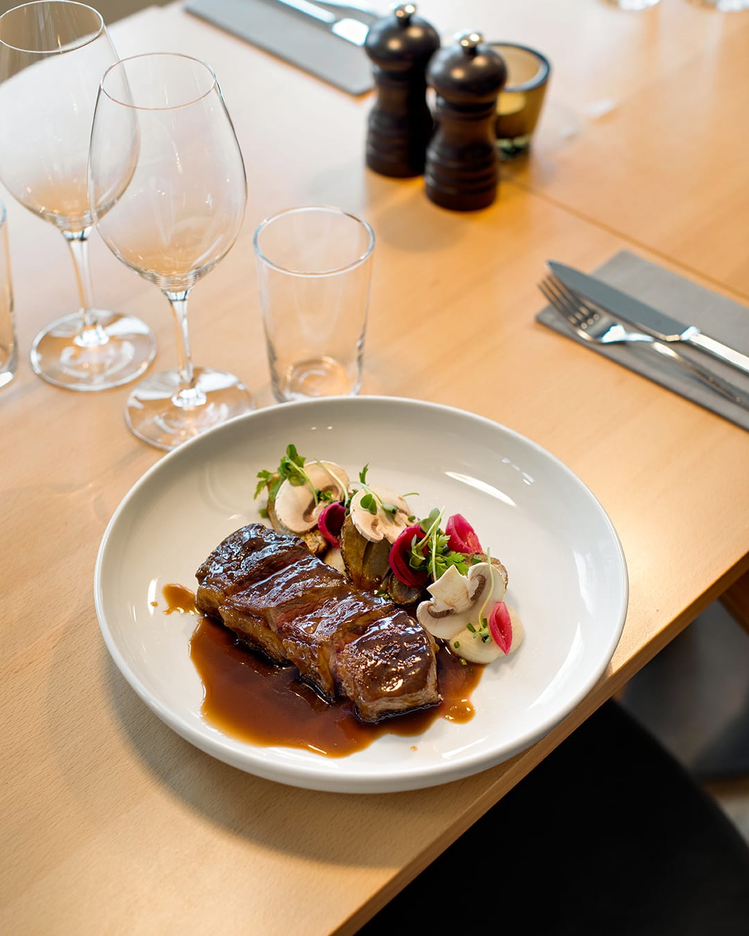 Vår meny består av säsongens bästa råvaror och vi älskar att kombinera olika smaker och tillbehör. Även om huvudråvarorna i våra rätter stannar, varierar tillbehören regelbundet för att spegla årstidens bästa ingredienser och ge dig som gäst en ny upplevelse vid varje besök.