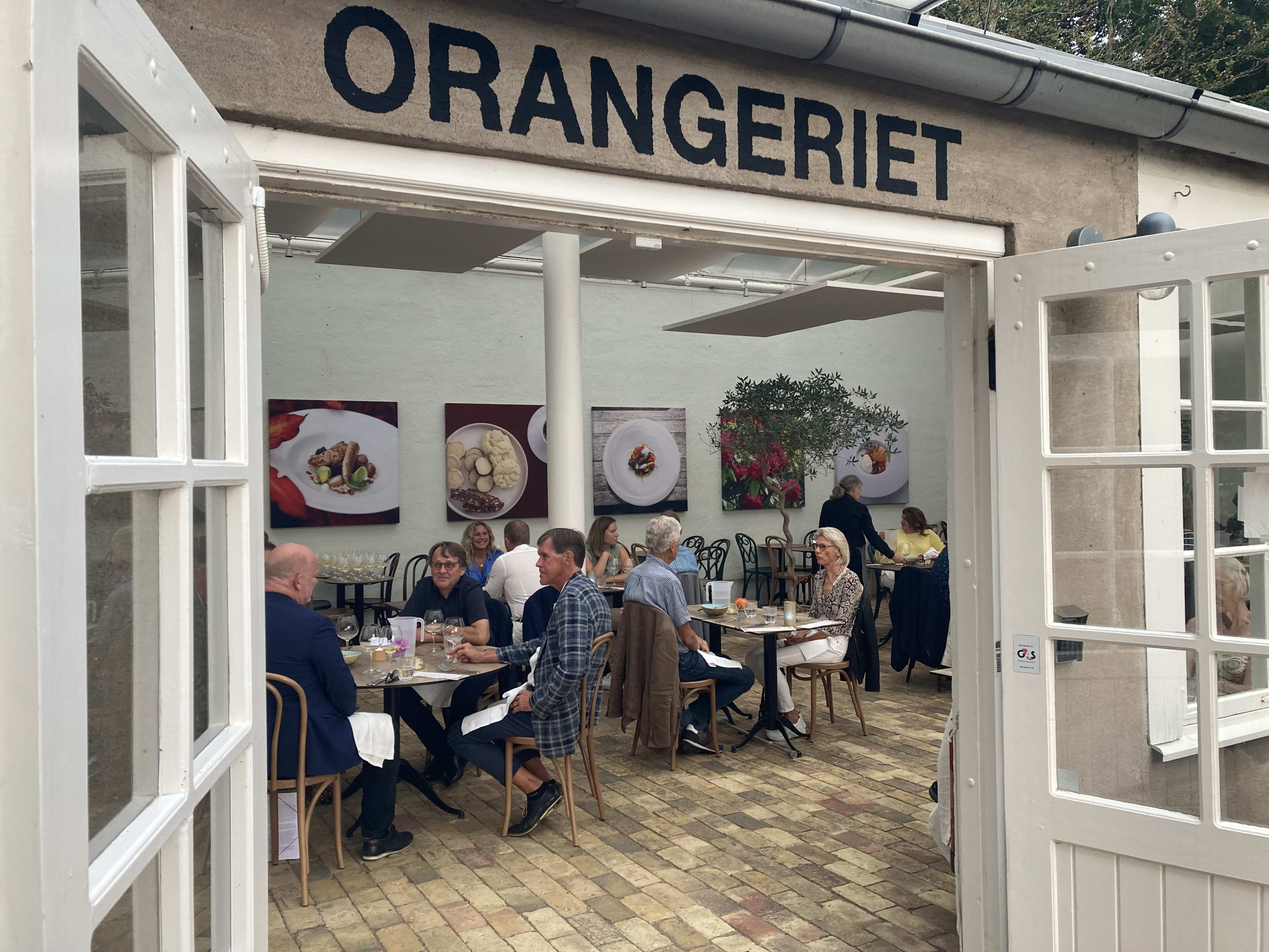 · I Orangeriet har vi plats för ca 80 gäster, plus lika många utomhus när det är fint väder. Orangeriet fungerar som en bistro, där vi serverar delikata pizzor, soppor och sallader. För våra kaffegäster finns det ett stort utbud av våra hemgjorda kakor och bakverk. Orangeriet är öppet dagtid under säsong.