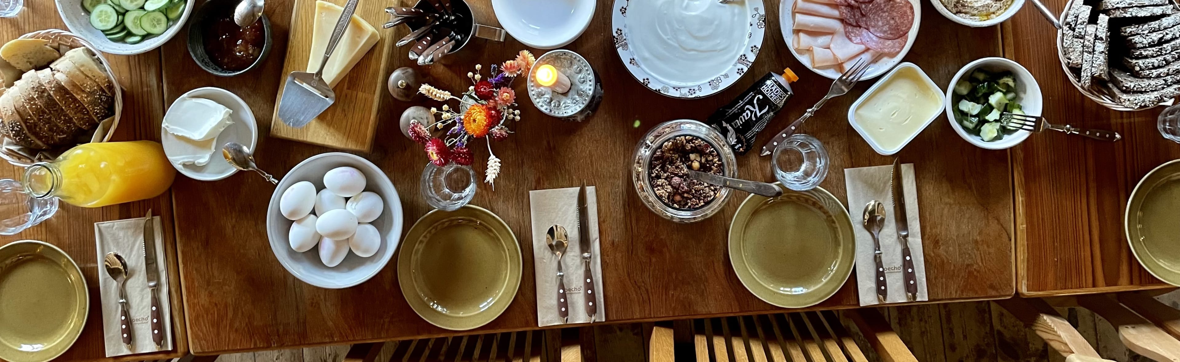 Här vill vi laga allt från grunden, och eftersom vi har lyxen att finnas på en plats med massor av inspiration och lokala producenter, är det en enkel uppgift.