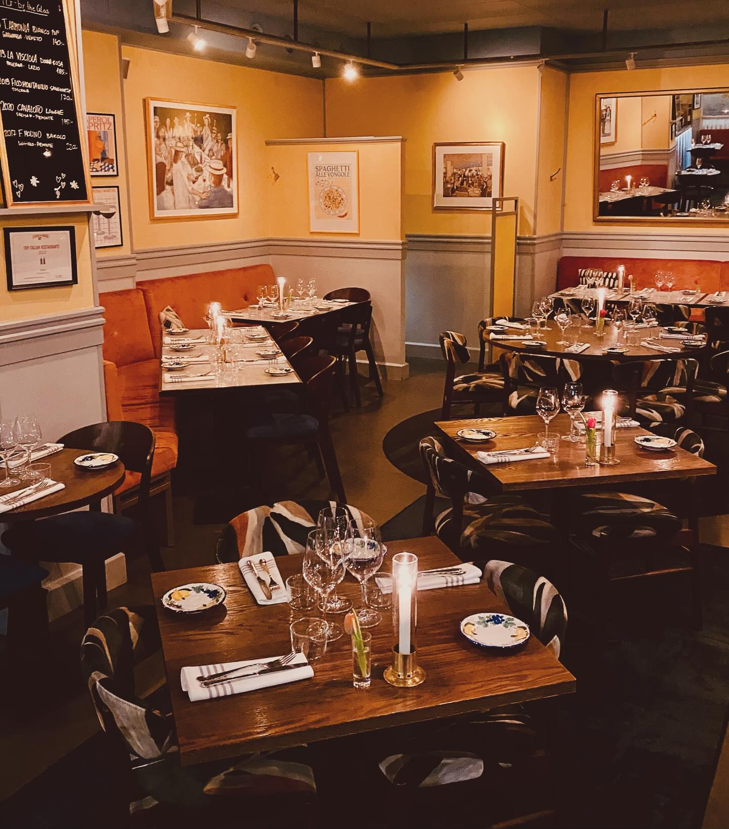 Italiensk kvarterskrog med gedigen vinlista och fokus på högkvalitativa råvaror från små producenter.