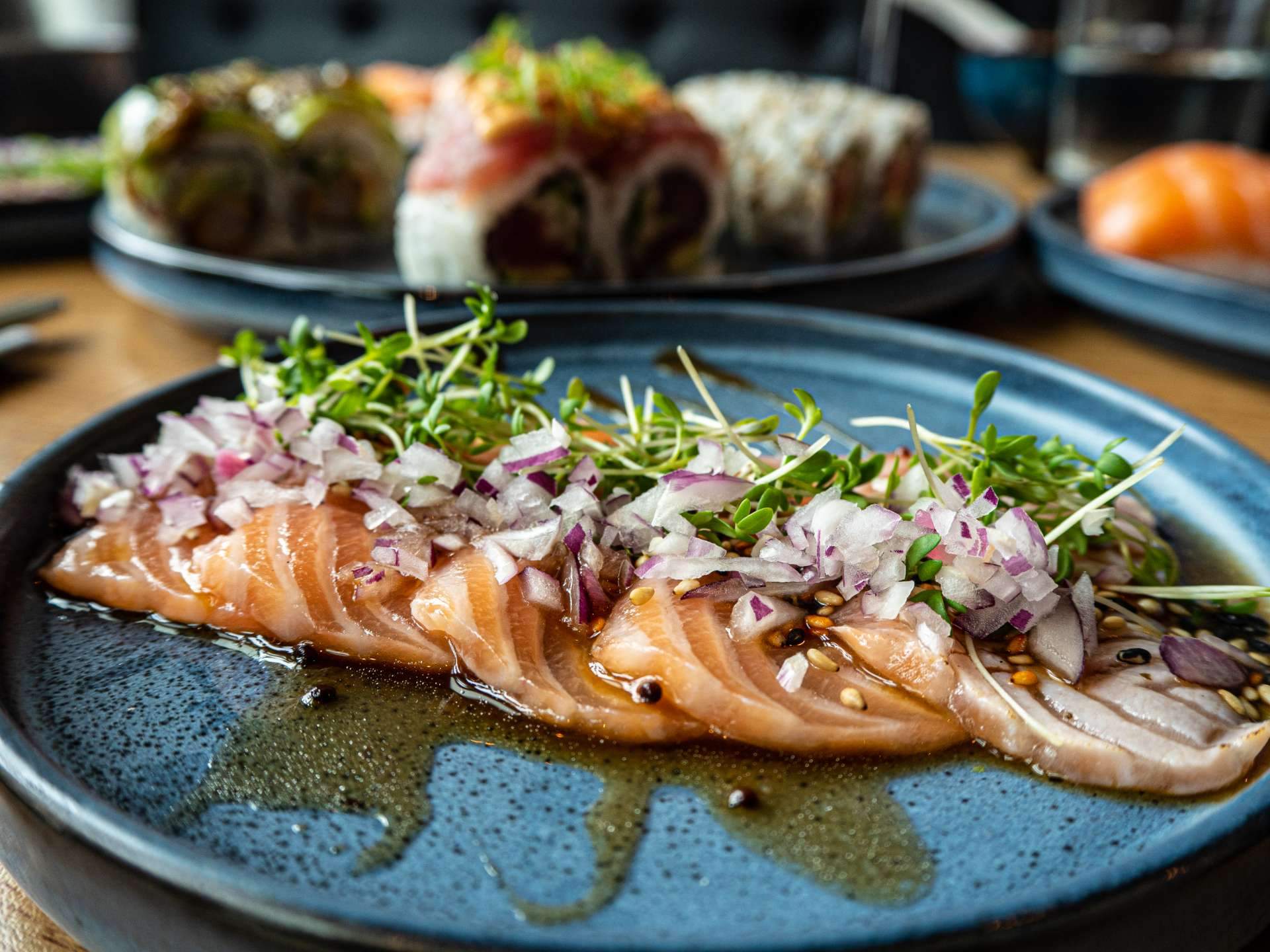 Vår ambition är att erbjuda sushi av hög kvalitet gjord på beställning, för att ge den härliga känslan av fräsch och smakrik sushi. Vår kärlek till sushi kombinerat med önskan om att erbjuda färsk, kreativ och god sushi resulterar i att all mat görs från grunden varje dag.