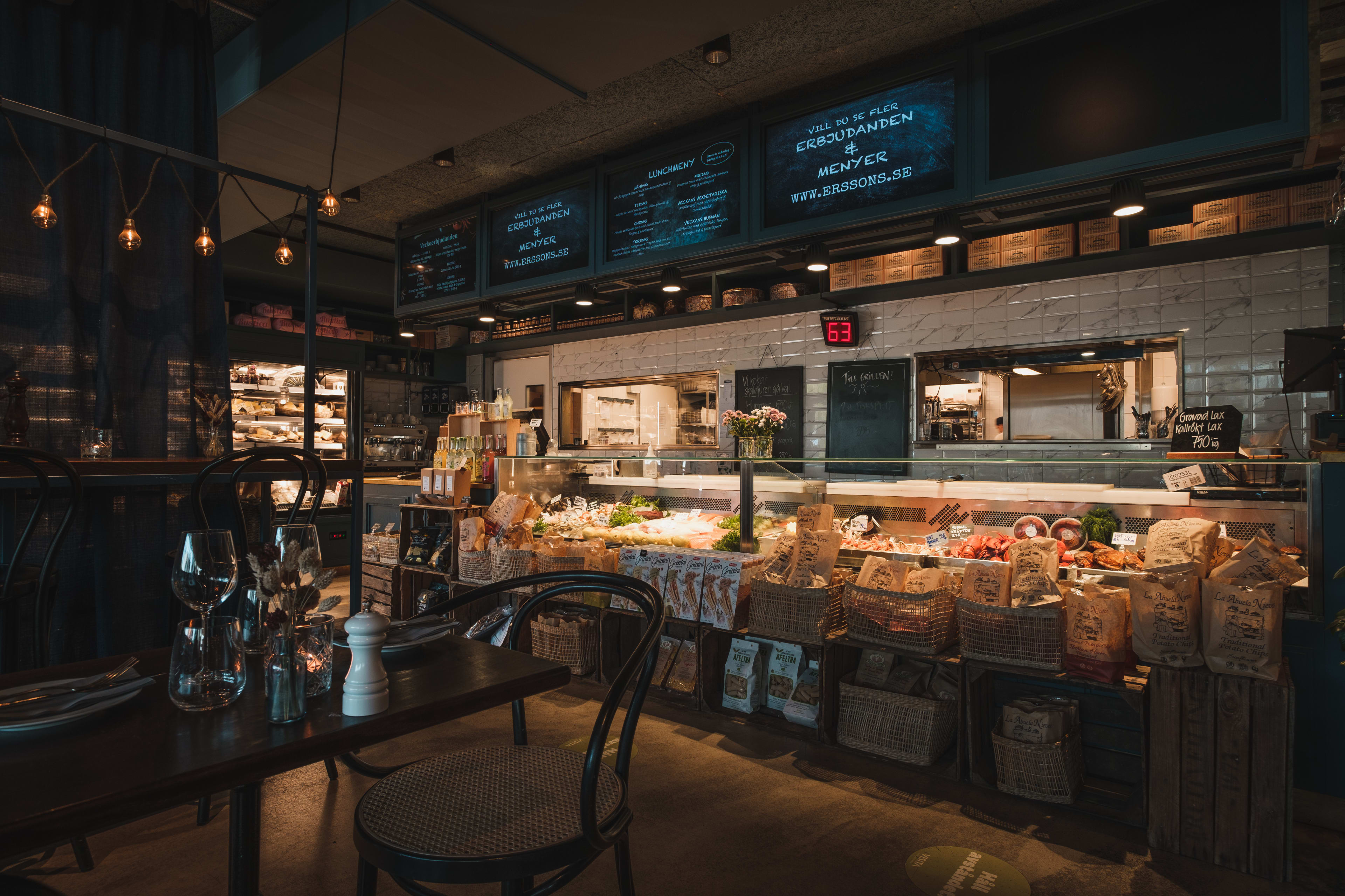 På Erssons kan du handla dina finaste råvaror, köpa med dig färdiglagat, beställa catering till festen eller komma och låta oss ta hand om dig i vår restaurang. Oavsett vad du väljer jobbar vi alltid med kvalitet och ett genuint bemötande och intresse om våra gäster och kunder!