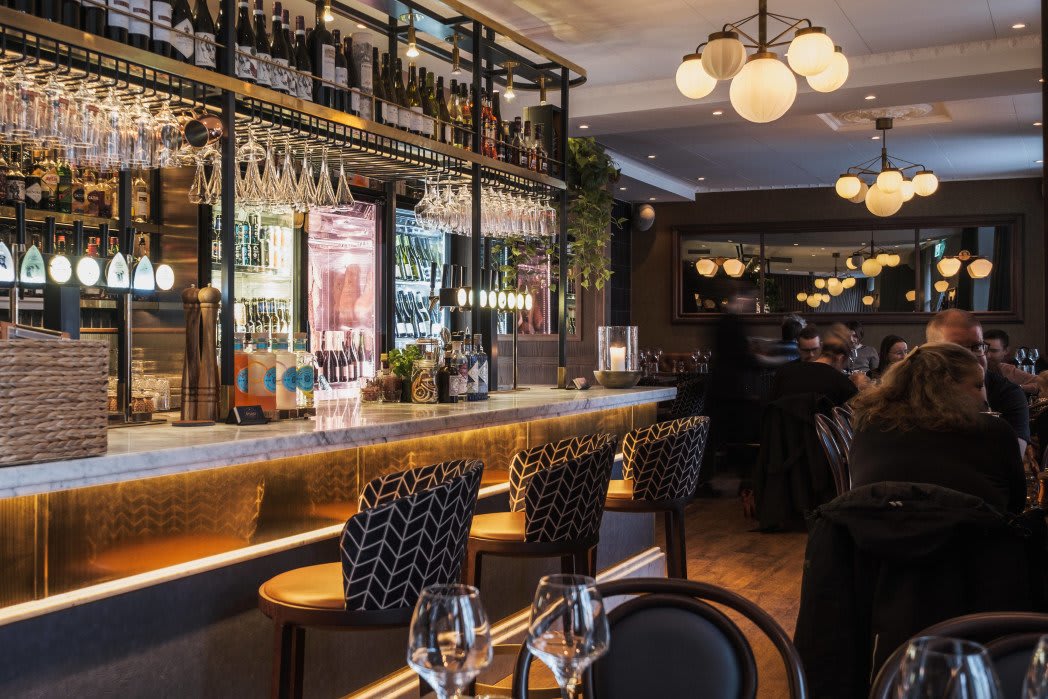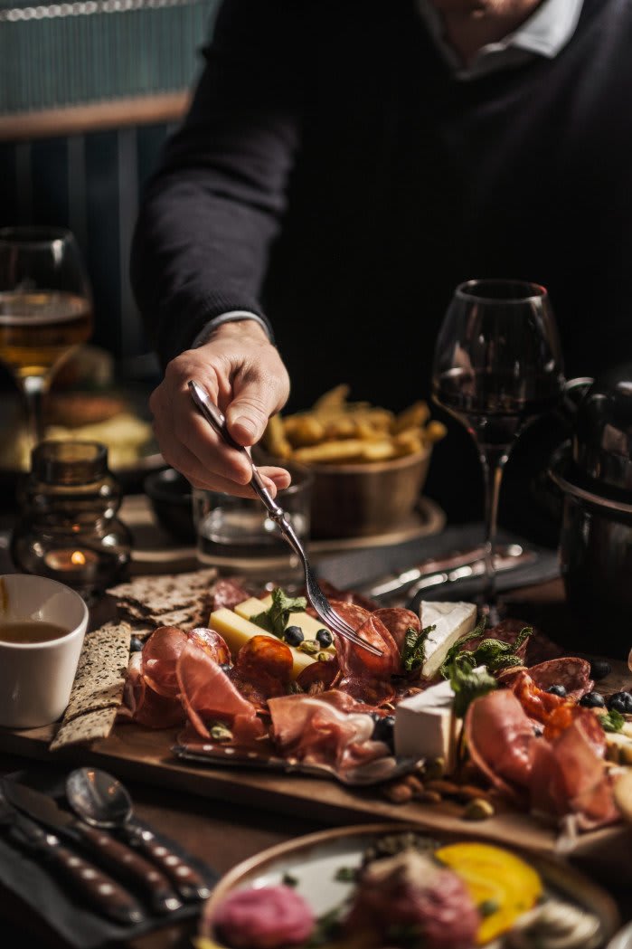 Här serverar vi mat från en välkomponerad meny och vare sig du vill äta en smakfull middag med ditt sällskap eller bara skåla med god dryck finner du allt du kan tänka dig i vårt gedigna barutbud.