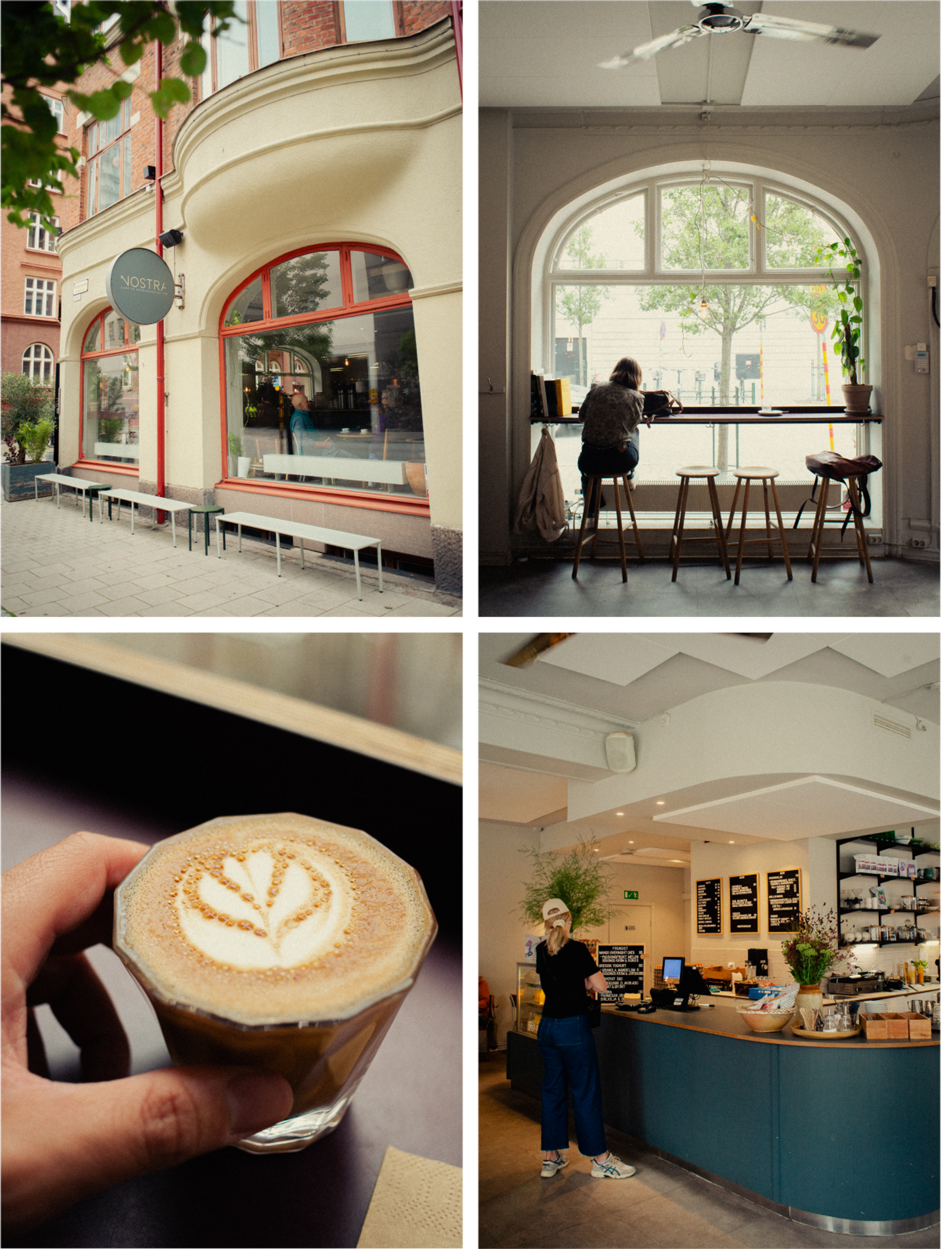 En regnig höstdag – en sån dag då man bara vill sitta vid fönstret, se regndropparna dansa ner på fönsterglaset och dricka en riktigt god kaffe. Jag gick in på Nostra och beställde favoriten: en cortado, och satte mig vid ett av de stora fönster som blickar ut mot gatan.