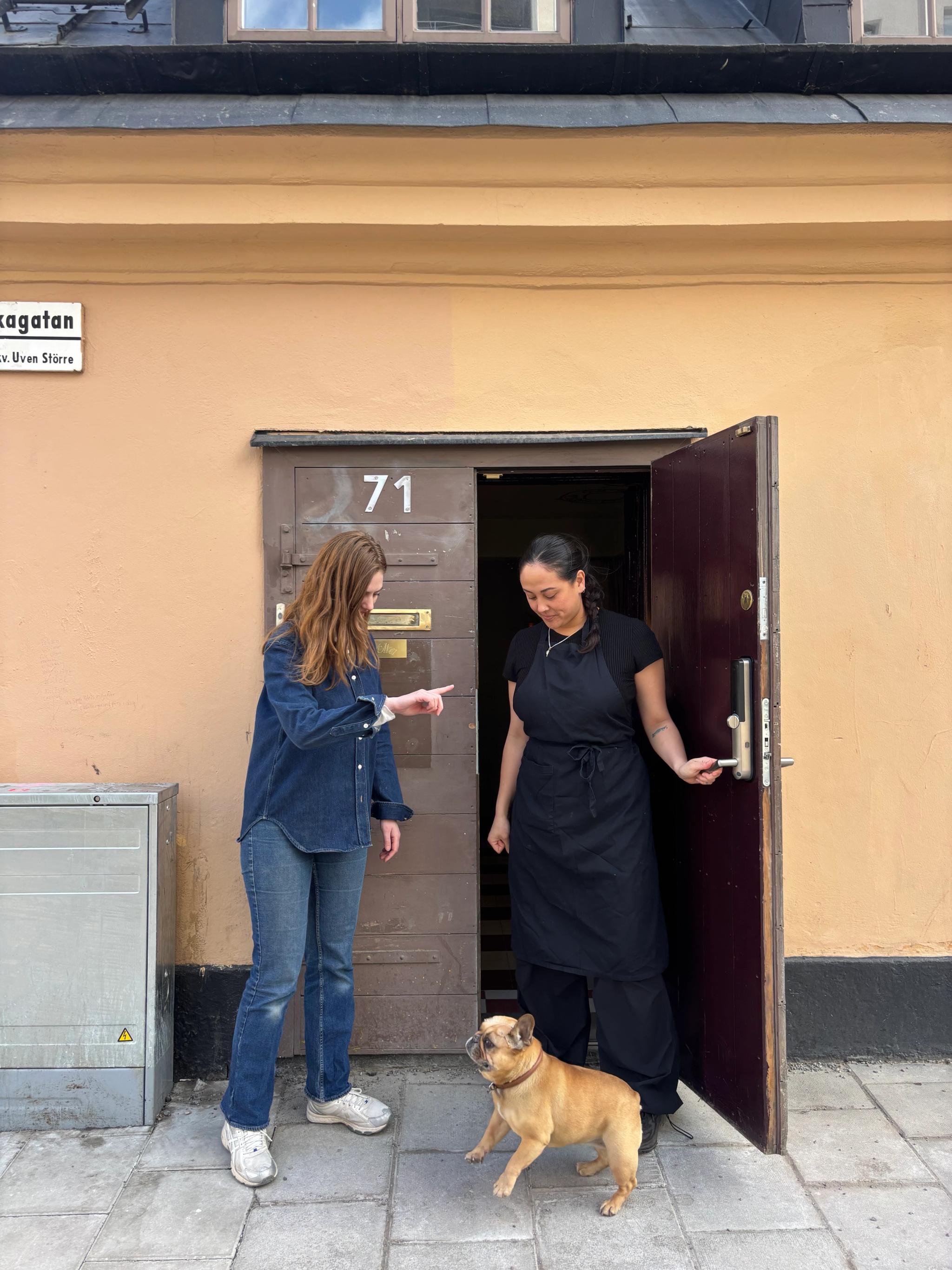 Genom en anonym dörr på Brännkyrkagatan i Stockholm hörs hundskall när vi knackar på dörren. Det är Miranda Lundbergs hund, Edna, som redan hunnit bli lite av en maskot på Klubb Volta.